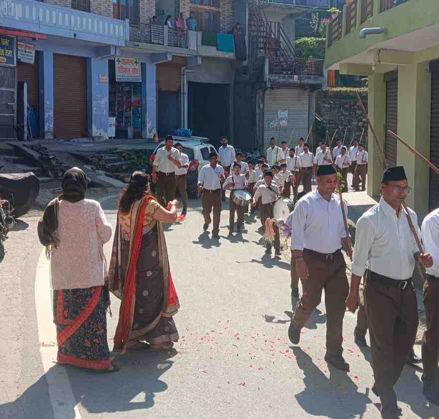 राष्ट्रीय स्वयंसेवक संघ (आरएसएस) की झूमाधुरी शाखा, कोलीढेक मंडल के तत्वावधान में संघ के शताब्दी वर्ष पूर्ण होने के उपलक्ष्य में भव्य पद संचलन एवं बौद्धिक कार्यक्रम का आयोजन किया गया। यह आयोजन संघ के गौरवशाली इतिहास, उसके आदर्शों और राष्ट्र निर्माण में उसकी निरंतर भूमिका को समर्पित था।स्वयंसेवक शशांक पाण्डेय ने जानकारी देते हुए बताया कि सुबह से ही सम्पूर्ण क्षेत्र में उत्साह का वातावरण था। गाँव के मुख्य मार्गों को सजाया गया था, और जगह-जगह स्वागत द्वार बनाए गए थे। स्वयंसेवक पारंपरिक गणवेश में, हाथों में दंड लिए हुए, अनुशासनबद्ध पंक्तियों में पद संचलन करते हुए जब निकले तो पूरा वातावरण “भारत माता की जय”, “वंदे मातरम्” के जयघोषों से गूंज उठा। गाँववासियों ने जगह-जगह पुष्पवर्षा कर स्वयंसेवकों का स्वागत किया और कार्यक्रम की सराहना की।