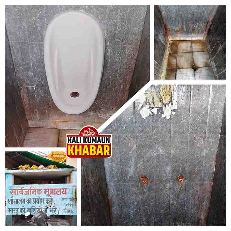 रिपोर्ट:लक्ष्मण बिष्ट : लोहाघाट पालिका कार्यालय के सामने मूत्रालय से पाट व पाइप गायब गंदगी का अंबार स्वच्छता के दावे हवा हवाई।
