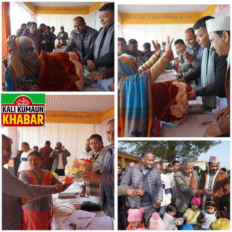 इसके अतिरिक्त 98 लोगों का आधार पंजीकरण/संशोधन तथा समान नागरिक संहिता (UCC) के अंतर्गत पंजीकरण किया गया। जिलाधिकारी द्वारा जरूरतमंद ग्रामीणों को कंबल वितरित किए गए। शिविर में रक्त जांच, आधार संशोधन, यूसीसी पंजीकरण, राशन कार्ड, पेंशन, प्रमाण-पत्र आवेदन, स्वास्थ्य परीक्षण, कृषि इनपुट वितरण, स्वरोजगार प्रशिक्षण, सहकारी योजनाओं की जानकारी एवं पशु स्वास्थ्य सेवाएँ एक ही स्थान पर उपलब्ध कराई गईं।महिला एवं बाल विकास विभाग द्वारा सामूहिक बालिका जन्मोत्सव आयोजित कर “बेटी बचाओ–बेटी पढ़ाओ” का संदेश दिया गया।इस दौरान दर्जा राज्य मंत्री श्याम नारायण पांडे, भाजपा जिला अध्यक्ष श्री गोविंद सामंत, सुभाष बगोली, ब्लॉक प्रमुख महेन्द्र ढेक, मुख्य विकास अधिकारी डॉ. जी. एस. खाती, उपजिलाधिकारी श्रीमती नीतू डागर, मुख्य कृषि अधिकारी धनपत कुमार, खंड विकास अधिकारी कविन्द्र रावत सहित अन्य अधिकारी, जनप्रतिनिधि एवं बड़ी संख्या में नागरिक उपस्थित रहे।