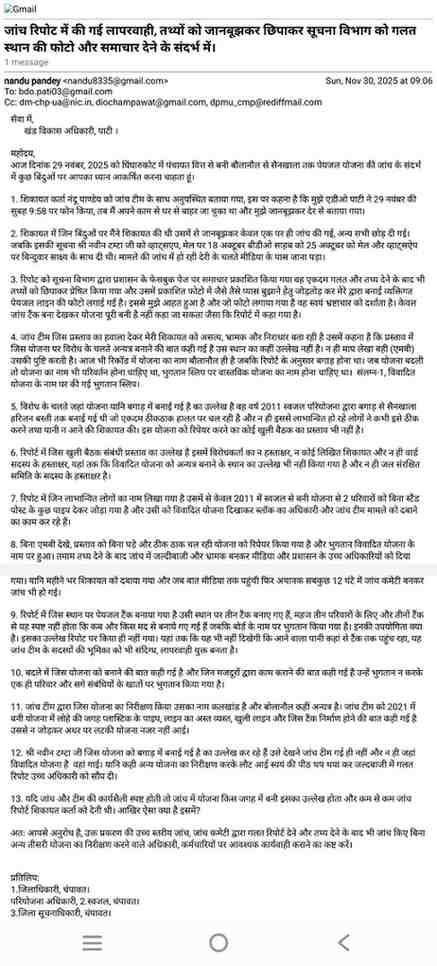 रिपोर्ट:लक्ष्मण बिष्ट : पाटी:घिंघारीकोट पेयजल योजना मामले में शिकायतकर्ता ने झूठी जांच रिपोर्ट देने के लगाए गंभीर आरोप।