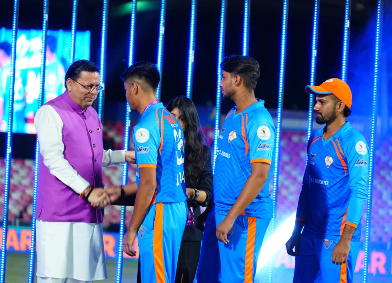 विकल्प रहित संकल्प’ ही सफलता का मंत्र — युवाओं को सीएम धामी का संदेशमुख्यमंत्री पुष्कर सिंह धामी ने क्रिकेट एसोसिएशन ऑफ उत्तराखंड की द्वारा राजीव गाँधी इंटरनेशनल स्टेडियम रायपुर देहरादून में आयोजित उत्तराखंड प्रीमियर लीग 2025 के समापन समारोह में प्रतिभाग किया | हरिद्वार एलमास उत्तराखंड प्रीमियर लीग 2025 चेपियनशिप का विजेता रहा |सभी खिलाड़ियों एंव आयोजन समिति के पदाधिकारियों का स्वागत व अभिनन्दन करते हुए मुख्यमंत्री श्री पुष्कर सिंह धामी ने उत्कृष्ट प्रदर्शन द्वारा उत्तराखंड प्रीमियर लीग चैंपियनशिप को जीतने वाली टीम के सभी खिलाड़ियों को बधाई दी | मुख्यमंत्री धामी ने कहा कि वे सभी टीमे और खिलाड़ी जो इस बार जीत से कुछ कदम दूर रह गए हैं उनसे मेरा आग्रह है कि खेल में हार-जीत स्वाभाविक है, लेकिन जो बात सबसे महत्वपूर्ण है वो है आपकी खेल भावना, परिश्रम और निरंतर आगे बढ़ने का जज्बा।मुख्यमंत्री ने कहा कि खेल न केवल युवाओं के शारीरिक और मानसिक विकास के लिए महत्वपूर्ण हैं, बल्कि खेल के माध्यम से युवाओं में अनुशासन, टीमवर्क और संघर्षशीलता जैसे गुणों का भी विकास होता है। इसी को देखते हुए हमारे प्रधानमंत्री नरेंद्र मोदी जी ने अपने कार्यकाल के प्रारंभ से ही ’’खेलो इंडिया’’ और ’’फिट इंडिया मूवमेंट’’ जैसे कार्यक्रमों के माध्यम से देश में खेल संस्कृति को प्रोत्साहित करने की मजबूत नींव रखी।