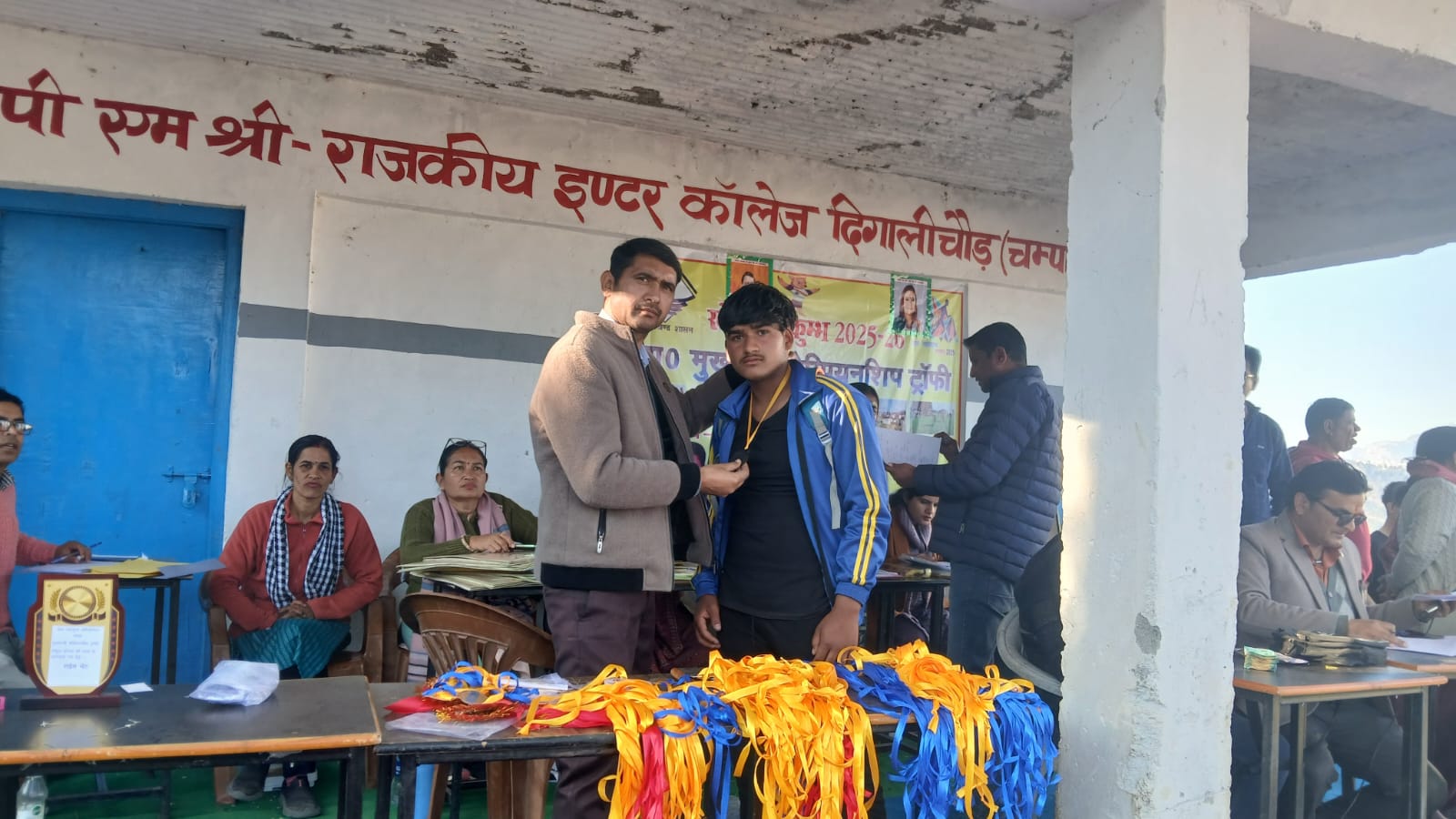 खेल महाकुंभ के अन्तर्गत द्वि दिवसीय अंडर 14 और अंडर 19 मुख्यमंत्री चैंपियनशिप प्रतियोगिता का आयोजन संकुल ढोरजा के पीएम श्री रा०इ०का० दिगालीचौड़ के खेल मैदान में किया गया। प्रतियोगिता का शुभारंभ मां सरस्वती के चरण कमलों में दीप प्रज्वलन व वंदना के साथ हुआ। प्रतियोगिता के नोडल अधिकारी प्रधानाचार्य डॉ० सुधाकर जोशी ने संकुल ढोरजा के समस्त प्रतिभागियों को आवश्यक दिशा निर्देश और शुभ कामना दी। प्रथम दिवस के मुख्य अतिथियों में ग्राम प्रधान लक्ष्मण सिंह भंडारी, दीपक सिंह प्रधान प्रतिनिधि भुवन कुमार सामाजिक कार्यकर्ता मोनू बिष्ट, फतेह सिंह भंडारी रहे।