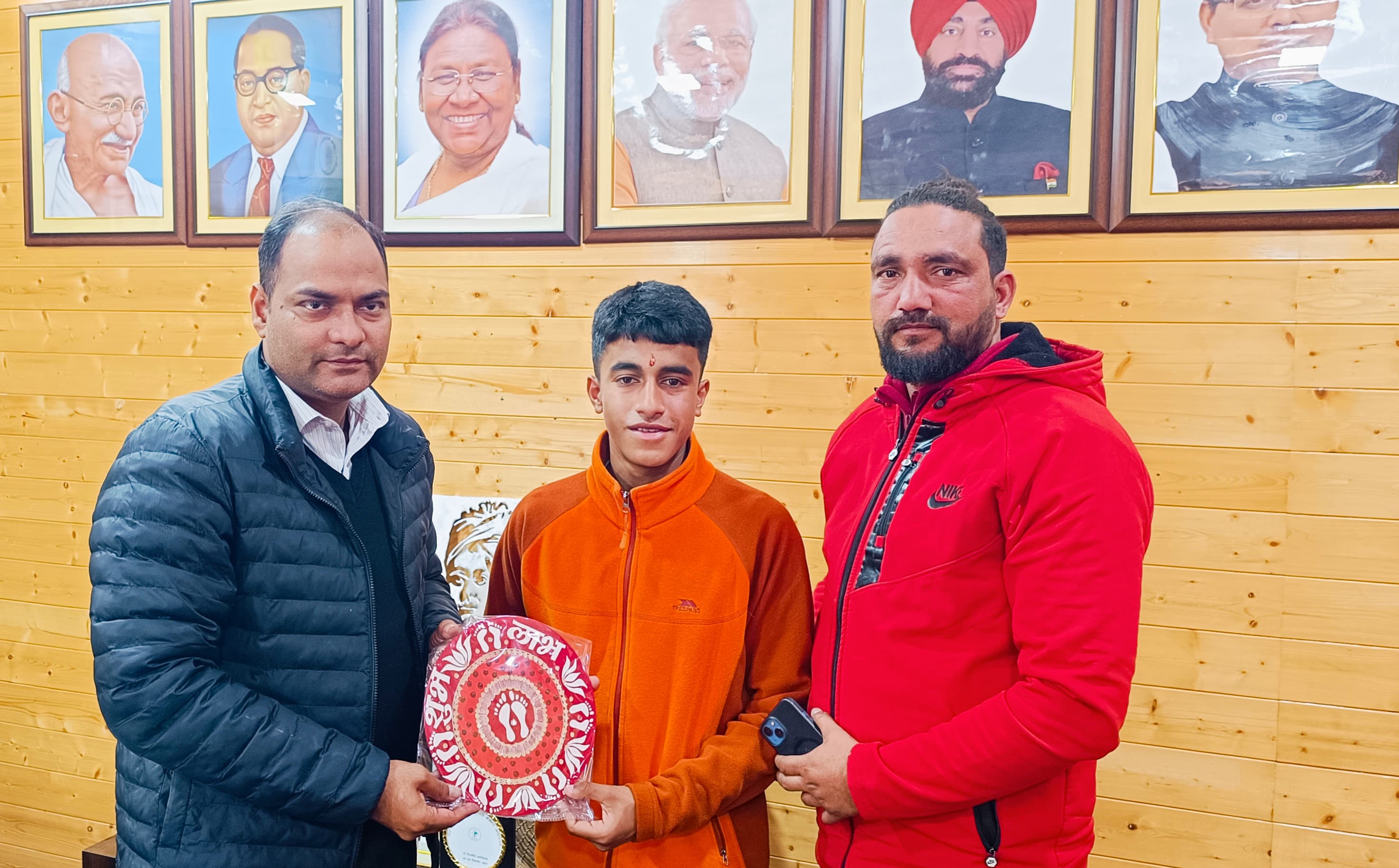 रिपोर्ट:लक्ष्मण बिष्ट : चंपावत:डीएम ने कोच व खिलाड़ी को किया सम्मानित अंडर-14 फुटबॉल में नैतिक करायत का राष्ट्रीय प्रतियोगिता हेतु चयन।