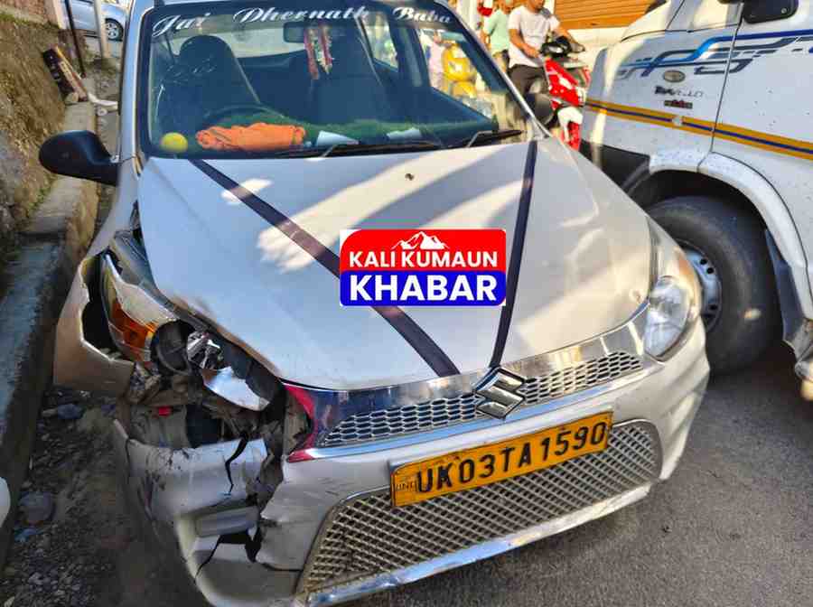 लोहाघाट में दो कारों के बीच जबरदस्त टक्कर बाल बाल बचा हादसा। अल्टो के ब्रेक फेल होने से हुई दुर्घटना।