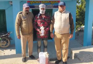 . एसपी चंपावत अजय गणपति के निर्देश पर संभावित जिले में नशा तस्करों के खिलाफ चलाए जा रहे अभियान के तहत आज सोमवार बाबा ब्यानधुरा मेले को नशा मुक्ति संपन्न कराए जाने हेतु एसओ रीठा साहिब कमलेश भट्ट के नेतृत्व में चेकिंग की जा रही थी चेकिंग के दोरान कठोल को जाने वाले रास्ते में चोकी बुडम से आगे उक्त मेले में बेचने हेतु लेकर जायी जा रही 10 लीटर अवैध शराब के साथ एक व्यक्ति को रीठा पुलिस ने गिरफ्तार किया,