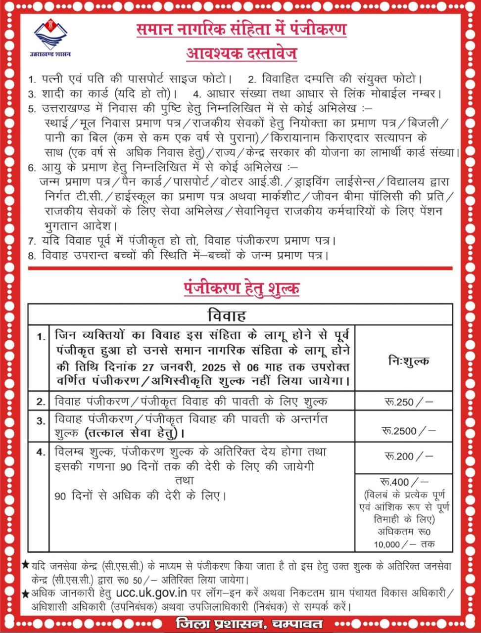 चंपावत जिले के विकास खण्ड बाराकोट की बापरू ग्राम पंचायत के सीएससी केंद्र में समान नागरिक पंजीकरण कैंप का आयोजन किया गया। कैंप में 8 लोगों का पंजीकरण कर प्रमाण पत्र दिए गए।पंचायती राज अधिकारी अशोक बिष्ट ,वीपीडीओ रंजन फर्त्याल, राजस्व निरीक्षक छतर सिंह ,बोहरा ,राजस्व उप निरीक्षक बापरू अनुज उप्रेती ,राजस्व उप निरीक्षक बाराकोट , गोविंद बल्लभ के द्वारा ग्रामीणों को समान नागरिक संहिता के प्रति जागरूक किया गया तथा पंजीकरण के लिए जरूरी कागजातों की जानकारी दी गई।तथा अधिक से अधिक पंजीकरण कराने की अपील की गई। इस दौरान जनप्रतिनिधि व ग्रामीण तथा सीएससी सेंटर स्वामी गोविंद जोशी मौजूद रहे।