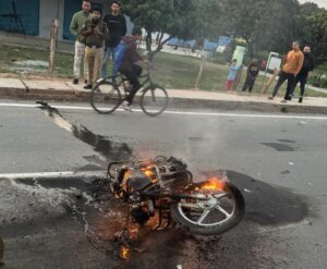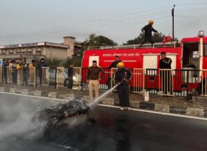 बनबसा में में आग लगने से बाइक स्वाहा अग्निशमन टीम टनकपुर ने मोटरसाइकिल में लगी आग को बुझाया