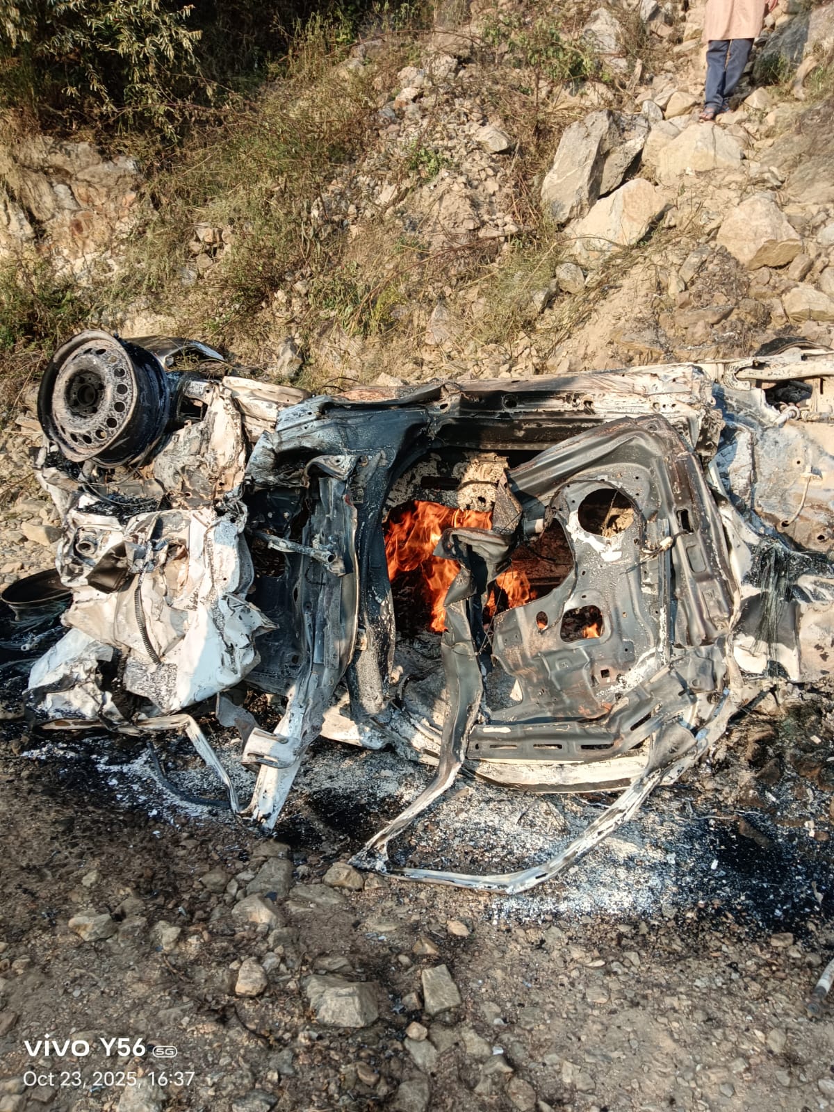 रिपोर्ट:लक्ष्मण बिष्ट : चमोली :देवखाल मे 600 मीटर गहरी खाई में गिरी कार तीन की मौत कार में लगी आग ।