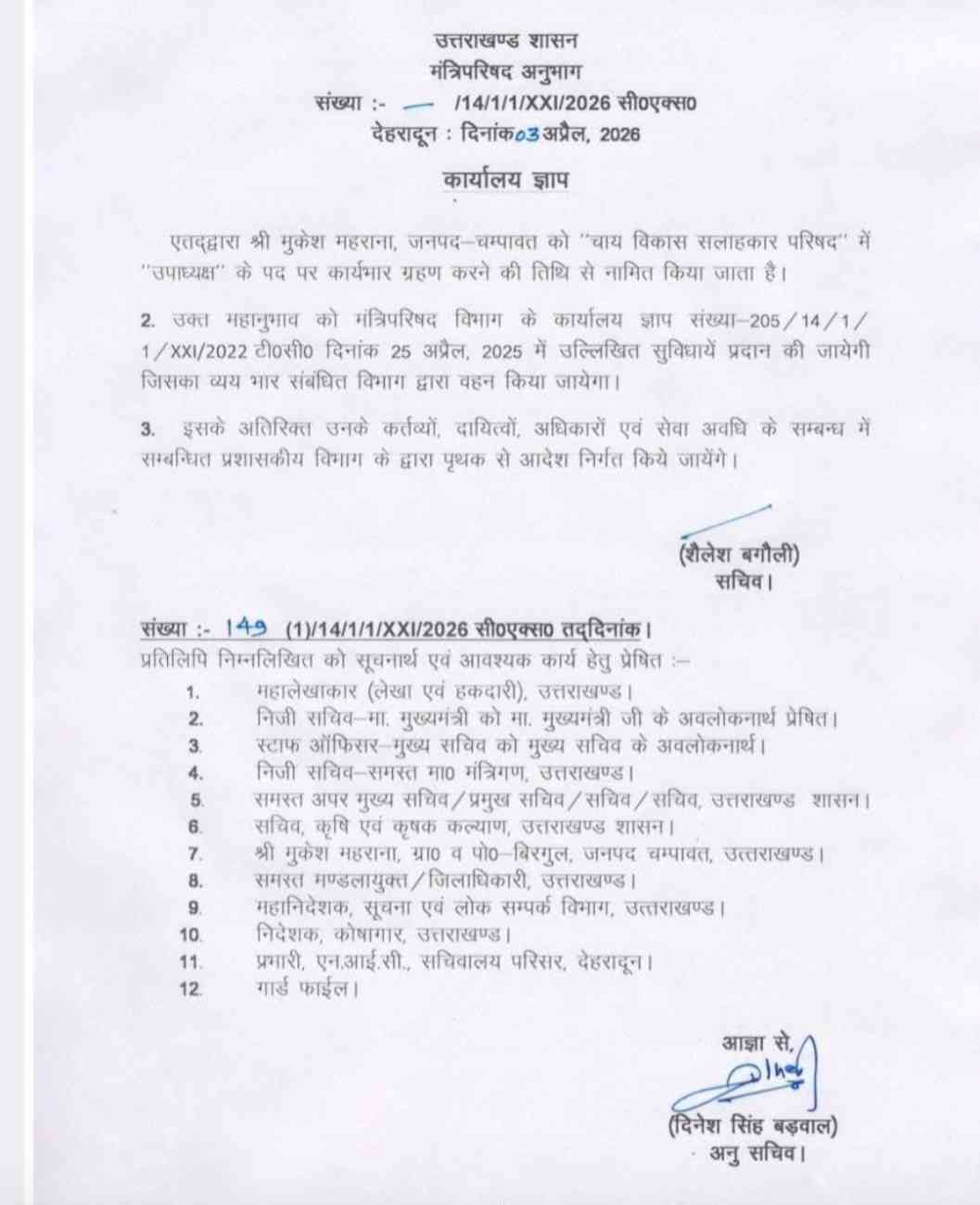 भजपा नेता मुकेश महराना बने दर्जा राज्य मंत्री। चंपावत को फिर मिली जिम्मेदारी।