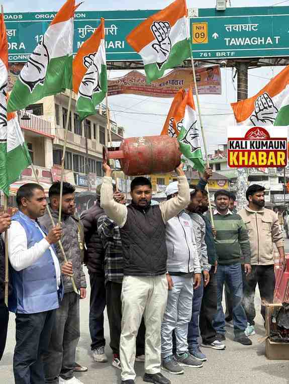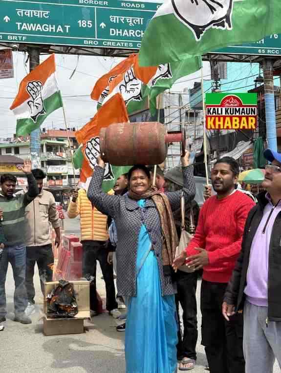 चंपावत।आज 23 मार्च को जहां भाजपा अपने चार साल के कार्यकाल पर जश्न मना रही है तो वहीं दूसरी ओर कांग्रेस रसोई गैस की कीमत व किल्लत को लेकर विरोध जता रही है। आज सोमवार को चंपावत जिले में हो रही रसोई गैस किल्लत को लेकर कांग्रेस जिला अध्यक्ष चंपावत चिराग फर्त्याल के नेतृत्व में कांग्रेस कार्यकर्ताओं ने जिला मुख्यालय में स्टेशन बाजार में खाली सिलेंडर हाथ में लेकर सरकार के खिलाफ जोरदार नारेबाजी करते हुए जोरदार प्रदर्शन किया तथा धामी सरकार का पुतला दहन किया। कांग्रेस जिला अध्यक्ष चिराग फर्त्याल व कांग्रेस नेत्री निर्मला गहतोड़ी ने कहा आज भाजपा सरकार हर मोर्चे पर फेल है। जहां युवा बेरोजगारी से परेशान है तो जनता महंगाई से प्रदेश की सड़कों के हाल बुरे हैं।