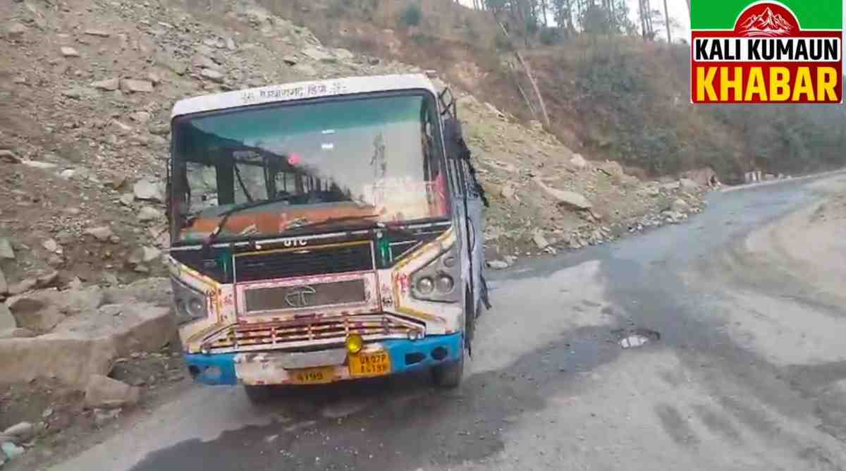 रिपोर्ट :लक्ष्मण बिष्ट : चंपावत:फिर यात्रियों की हुई फजीहत स्वाला डेंजर जोन के पास खराब हुई रोडवेज बस।