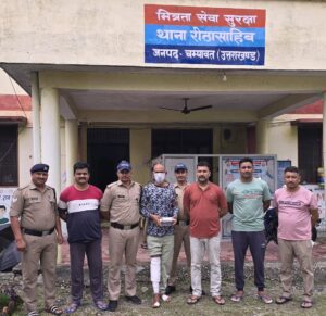 बन्दीगृह लोहाघाट से फरार केदी को पुलिस ने बिनवालगाव, रीठा साहिब जंगल क्षेत्र मे मुठभेड के दौरान गिरफ्तार किया है आरोपी के कब्जे से पुलिस ने एक देसी पिस्टल मय एक जिन्दा व दो खोखा कारतूस बरामद किए हैं पुलिस टीम पर फायरिंग करने तथा अवैध हथियार रखने पर अभियुक्त के खिलाफ़ थाना रीठा साहिब में किया गया अभियोग पंजीकृत किया गया है 27 सितंबर को चल्थी क्षेत्र मे अभियुक्त शंकर लाल चौधरी पुत्र विपत लाल चौधरी, निवासी ग्राम धर्मपुर महेंद्र नगर (नेपाल) द्वारा एक महिला के साथ बलात्कार करने के आरोप में अभियुक्त को न्यायिक बन्दीगृह लोहाघाट भेजा गया था, जो कि 12 सितंबर को बन्दीगृह, लोहाघाट से फरार हो गया था। कैदी के भागने से पूरे पुलिस प्रशासन में हड़कंप मच गया था जिस संबंध में थाना लोहाघाट में आरोपी के खिलाफ धारा 262 बीएनएस पंजीकृत किया गया ।एसपी चंपावत अजय गणपति द्वारा जनपद के सभी थाना क्षेत्र मे सघन चेकिंग अभियान चलाते हुए अभियुक्त को गिरफ्तार किए जाने हेतु सभी थाना प्रभारियो को निर्देशित किया गया एसपी के निर्देश पर जनपद चंपावत पुलिस द्वारा दो दिनों से हो रही भारी बारिश/आपदा के दौरान राहत एवं बचाव कार्य तथा सुगम यात्रा व्यवस्था बनाते हुए जनपद मे सघन चेकिंग अभियान चलाते हुए 13 सितंबर की सांय को थाना रीठासाहिब क्षेत्र से कमलेश भट्ट, थानाध्यक्ष, थाना रीठा साहिब को अभियुक्त शंकर लाल के रीठासाहीब क्षेत्र मे बिनवालगांव जंगल क्षेत्र में होने की सूचना मिली जिस पर थाना अध्यक्ष के नेतृत्व में पुलिस टीम द्वारा तत्काल बिनवाल गांव जंगल क्षेत्र में जाकर अभियुक्त की गिरफ्तारी के लिए दबिस दी गई। इस दौरान जंगल क्षेत्र में अभियुक्त के दिखाई देने पर पुलिस टीम द्वारा उसे पकड़ने का प्रयास करने पर अभियुक्त द्वारा पुलिस टीम पर फायरिंग शुरू कर दी जिस पर पुलिस टीम द्वारा बचाव मे जवाबी फायरिंग की गई।गिरफ्तारी से बचने के लिए भागने के दौरान गिरने से अभियुक्त को कुछ चोटे आई हैं। पुलिस टीम द्वारा अभियुक्त शंकर लाल को बिनवाल गाव के जंगल से गिरफ्तार किया गया ।पुलिस ने आरोपी के कब्जे से अवैध देसी पिस्टल , एक जिन्दा व 02 खोखा कारतूस बरामद किया पुलिस ने आरोपी के खिलाफ पुलिस टीम पर फायरिंग करने के आरोप में मुकदमा दर्ज किया है कैदी जेल से कैसे भाग पुलिस इस बारे में कैदी से पूछताछ कर रही है पुलिस टीम मे एसओ कमलेश भट्ट, एसआई तेजकुमार,हेड कांस्टेबल राजेंद्र प्रसाद ,हेड कांस्टेबल दीपक बिष्ट,हेड कांस्टेबल हरीश नाथ,कांस्टेबल मनोज कुमार शामिल रहे फरार कैदी के पकड़े जाने से चंपावत पुलिस ने राहत की सांस ली
