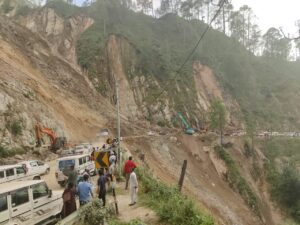 राष्ट्रीय राजमार्ग के स्वाला में अभी भी रुक-रुक कर आ रहा है मलवा। भारी वाहनों की आवाजाही पर लगी हुई है रोक।