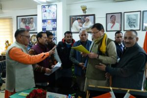 सौर घाटी सरकारी सस्ता गल्ला विक्रेता संघ के प्रतिनिधि मंडल ने मुख्यमंत्री पुष्कर सिंह धामी से करी मुलाकात