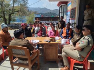उन्होंने लोगों से भी संदिग्ध बाहरी लोगों की सूचना पुलिस को देने की अपील करी है वहीं व्यापारियों को जनप्रतिनिधि ने पुलिस को अपना पूरा सहयोग देने का आश्वासन दिया बैठक में एसएसआई चेतन रावत , एसआई अंजू यादव ,बीना कनोजिया ,प्रकाश सिंह बोहरा ,गंगा पाटनी ,मोहन चंद्र पाटनी ,राजू गढ़कोटी, सचिन विश्वकर्मा, दीपक शाह,