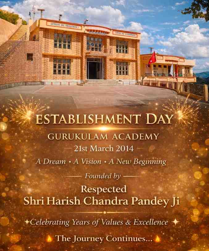 21 मार्च वह ऐतिहासिक दिन है जब लोहाघाट चम्पावत में शिक्षा के क्षेत्र में गुरुकुलम एकेडमी खूना मानेश्वर की स्थापना वर्ष 2014 में हुई। यह एक विद्यालय की शुरुआत के साथ साथ एक ऐसे संकल्प का आरंभ था, जिसका उद्देश्य बच्चों को गुणवत्तापूर्ण शिक्षा के साथ-साथ संस्कार, अनुशासन और जीवन मूल्यों से परिपूर्ण बनाना था। नगर के शोर-शराबे से दूर, शांत और प्राकृतिक वातावरण में स्थित यह विद्यालय अपने आप में एक अनूठी पहचान रखता है। यहाँ की स्वच्छ वायु, हरियाली से आच्छादित परिसर और दूर क्षितिज पर दिखाई देने वाली हिमालय की सुंदर वादियाँ विद्यार्थियों को एकाग्रता, शांति और सकारात्मक ऊर्जा प्रदान करती हैं।