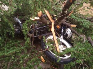 : लोहाघाट:अंधर ने मचाई तबाही दो भवनो में गिरे पेड़ बाइक हुई क्षतिग्रस्त बाल बाल बचे लोग भाग कर बचाई जान