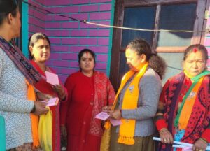 : लोहाघाट:प्रशासक जिला पंचायत ज्योति राय ने गोविंद वर्मा के लिए किया घर-घर चुनाव प्रचार /महिलाओं संग कूदी चुनाव मैदान में