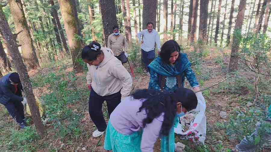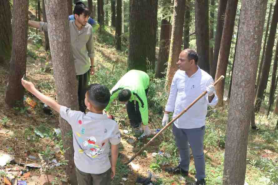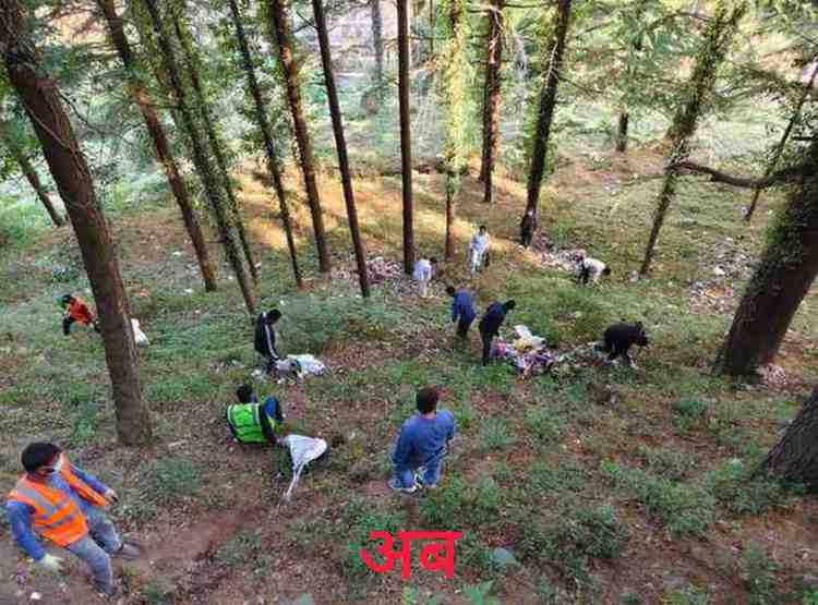 देवदार बनी में चला वृहद स्वच्छता अभियान डीएम व एडीएम झाड़ू लेकर उतरे मैदान में।