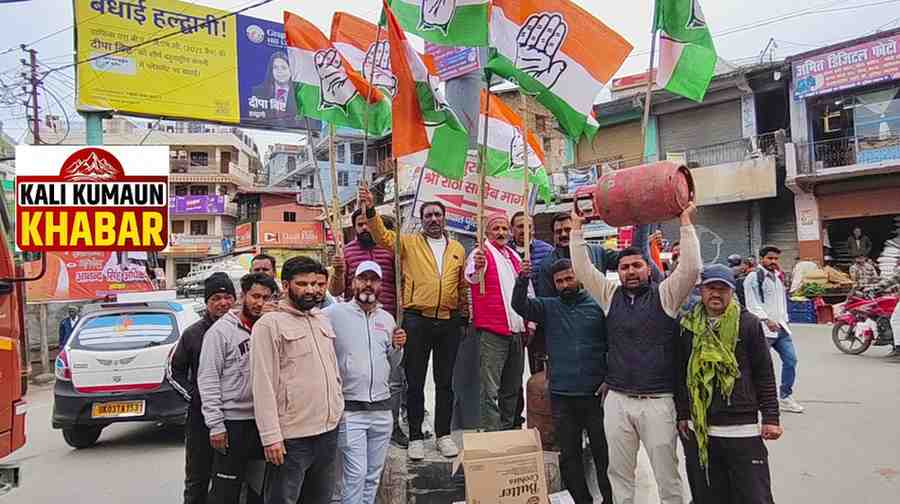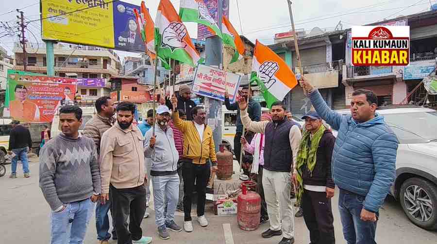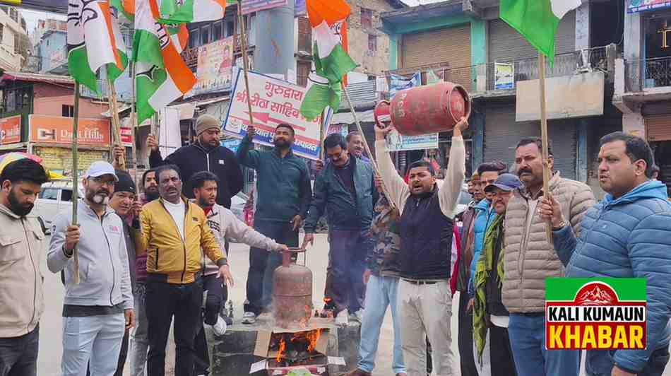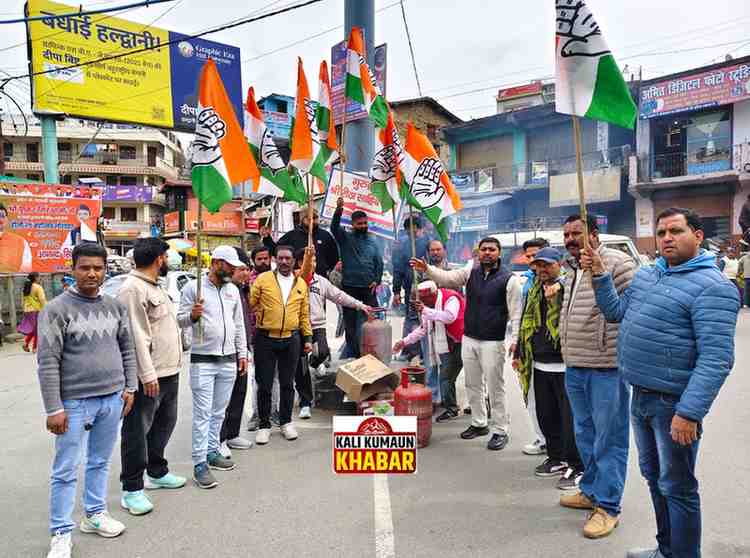 लोहाघाट।आज 23 मार्च को जहां भाजपा अपने चार साल के कार्यकाल पर जश्न मना रही है तो वहीं दूसरी ओर कांग्रेस रसोई गैस की कीमत को लेकर विरोध जता रही है। आज सोमवार को जिले में हो रही रसोई गैस किल्लत को लेकर कांग्रेस जिला अध्यक्ष चंपावत चिराग फर्त्याल के नेतृत्व में कांग्रेस कार्यकर्ताओं ने स्टेशन बाजार के वीर कालू सिंह चौक पर खाली सिलेंडर हाथ में लेकर सरकार के खिलाफ जोरदार नारेबाजी करते हुए जोरदार प्रदर्शन किया तथा धामी सरकार का पुतला दहन किया। कांग्रेस जिला अध्यक्ष चिराग फर्त्याल ने कहा आज भाजपा सरकार हर मोर्चे पर फेल है।