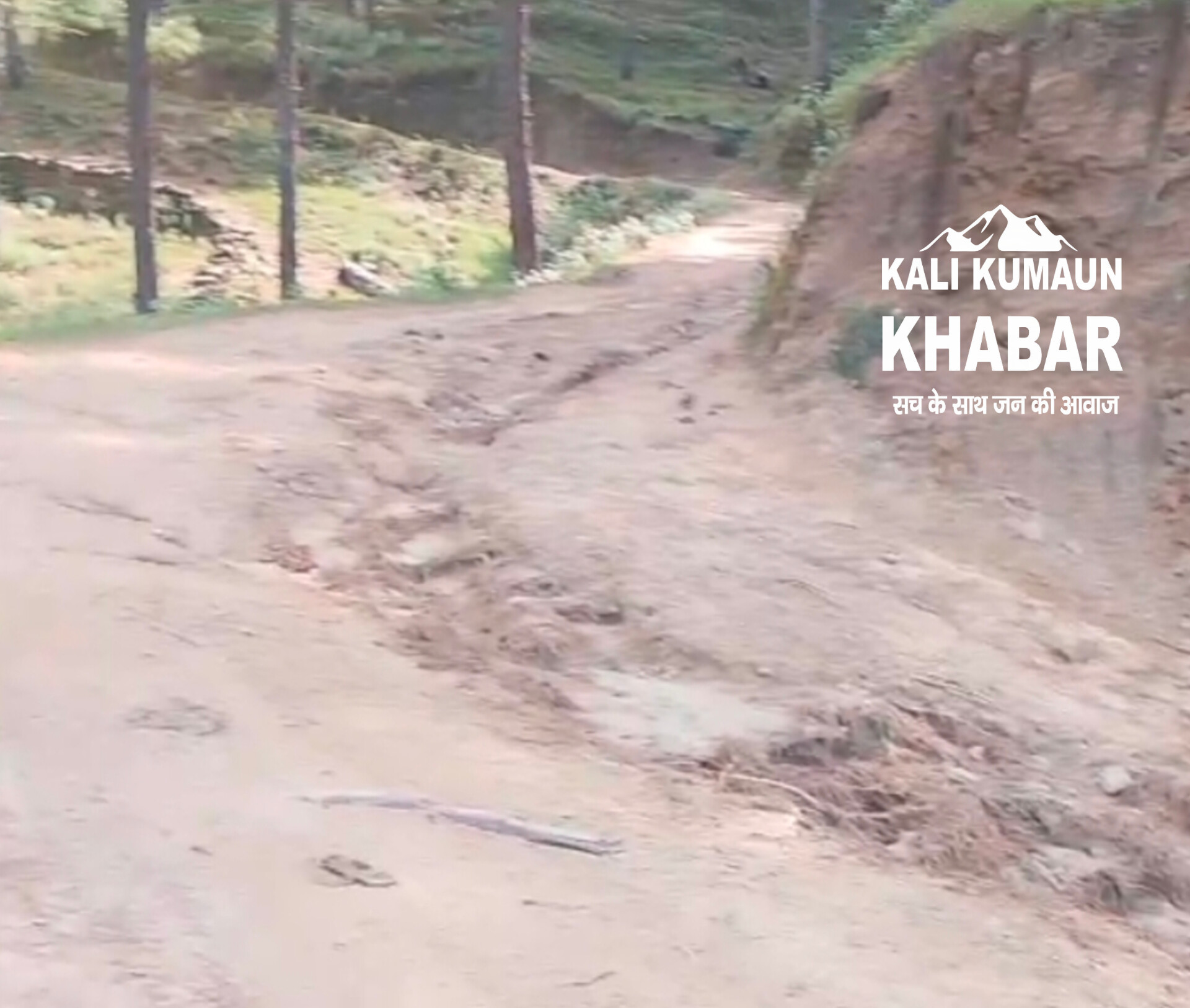 लोहाघाट:25 साल से डामरीकरण के इंतजार में डनगांव सड़क। दुर्घटना की बनी हुई है संभावना।