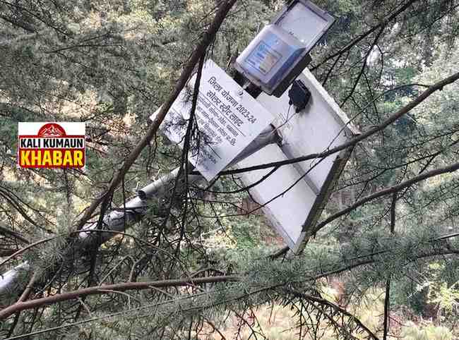 लोहाघाट चंपावत राष्ट्रीय राजमार्ग में लोहाघाट के शिवालय मंदिर से आगे नर्सरी गधेरे के पास उरेडा के द्वारा जिला योजना से सोलर लाइट लगवाई गई थी। पर एक महीने से यह सोलर लाइट पोल सहित धराशाई होकर गिरी पड़ी है। पर किसी भी विभागीय अधिकारी व जनप्रतिनिधियो का ध्यान इस और नहीं गया है। जबकि इस मार्ग से रोज जिले के कई अधिकारी व जनप्रतिनिधि वाहनों से फर्राटे भरते हुए गुजरते हैं। वहीं लोगों ने इसे बड़ी लापरवाही बताते हुए कहा नर्सरी के पास बने पेयजल टैंक से काफी लोग पेयजल भरते हैं
