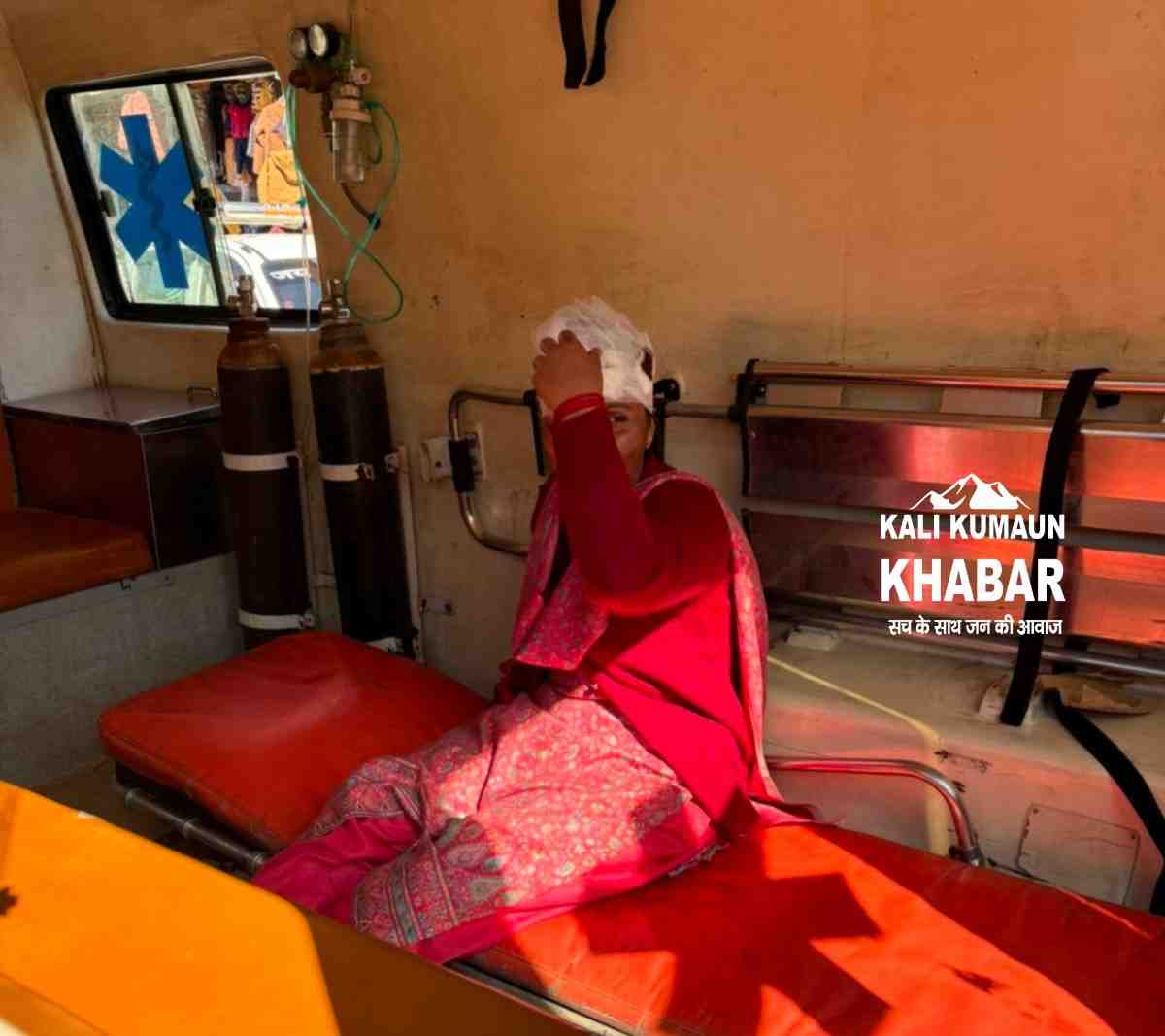 एक घंटे तक एंबुलेंस में लेटी रही महिला।लोहाघाट स्टेशन बाजार में लगा भीषण जाम ।