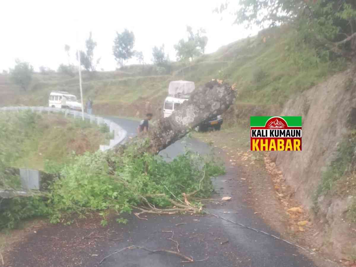 लोहाघाट की सीमांत मडलक के बगोटी के तोक बसोटा में आज दोपहर लगभग 3:30 बजे आए आधी और तूफान से नागार्जुन बाबा मंदिर बसोटा का विशालकाय पेड़ का एक हिस्सा टूट गया है जिससे विद्युत लाइन के तार को काफी क्षति पहुंची हुई है। पेड़ गिरने से मडलक बगोटी रोड बंद हो गई है। क्षेत्र के सामाजिक कार्यकर्ता भुवन बिष्ट ने बताया सड़क बंद होने से एसएसबी के साथ-साथ अन्य वाहन फस गए हैं तथा विद्युत आपूर्ति बंद हो चुकी है। ग्रामीणों ने प्रशासन से जल्द से जल्द सड़क खोलने और विद्युत व्यवस्था बहाल करने की मांग की है। सड़क बंद होने की सूचना मिलते ही एसडीएम लोहाघाट नीतू डांगर ने पीएमजीएसवाई विभाग को तत्काल सड़क खोलने के निर्देश दिए हैं।