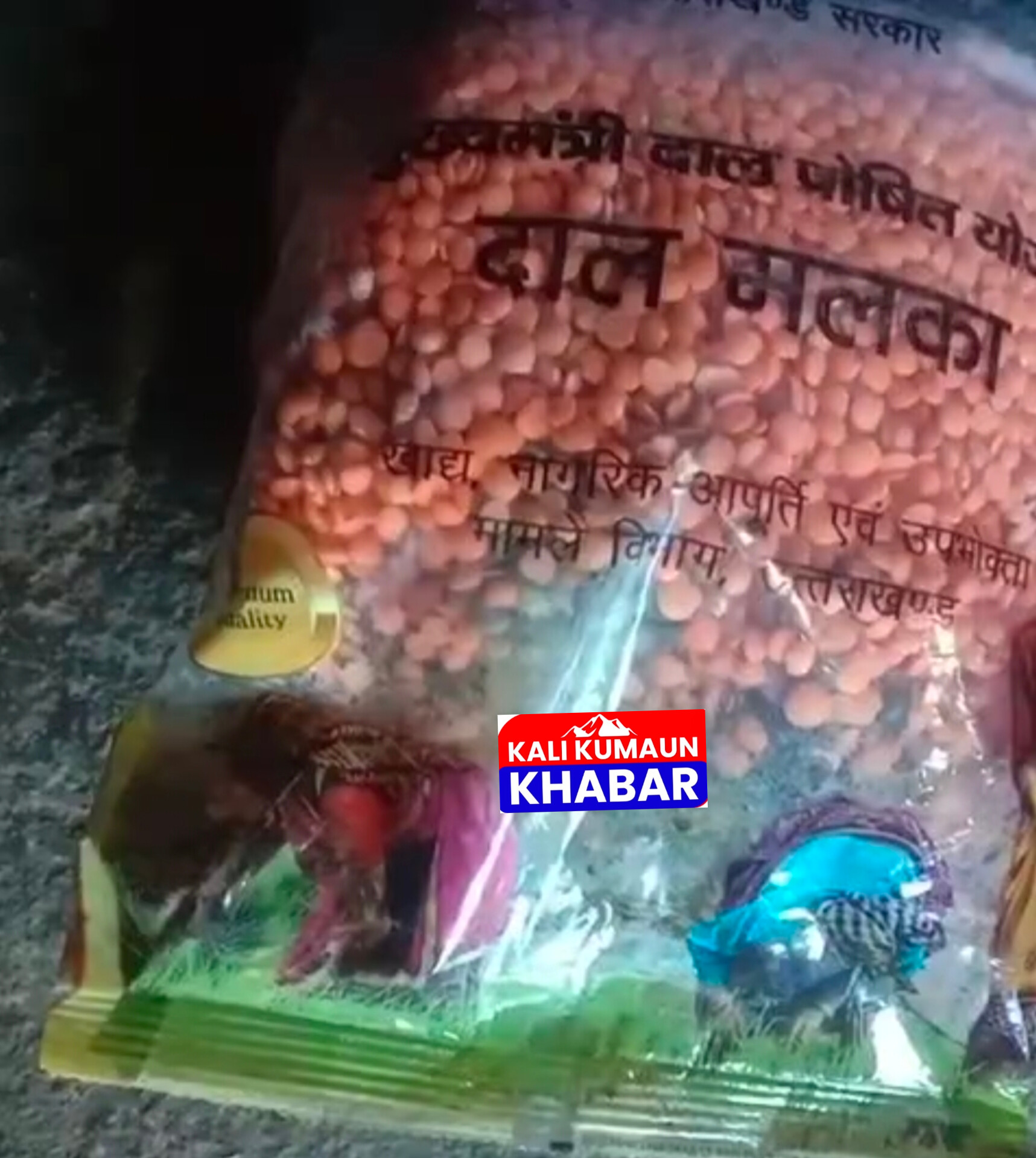 किमतोली मे मुख्यमंत्री दाल पोषित योजना में निकली सड़ी हुई मलका की दाल।सरकार के द्वारा चलाई जा रही मुख्यमंत्री दाल पोषित योजना के तहत सरकारी सस्ता गल्ला की दुकानों में जनता को मलका की दाल बिक्री की जा रही है। तो वही आज 17 अक्टूबर को किमतोली की सरकारी सस्ता गल्ला की दुकान में जब सस्ता गल्ला व्यापारी नरेंद्र सिंह अधिकारी के द्वारा ग्राहकों को देने के लिए दाल का पैकेट निकाला गया तो उससे बदबू आ रही थी। सस्ता गल्ला विक्रेता नरेंद्र सिंह अधिकारी ने बताया जब उनके द्वारा दाल का पैकेट खोला गया तो उसके अंदर सड़ी हुई मलका की दाल निकली जिससे भयंकर बदबू आ रही थी ।