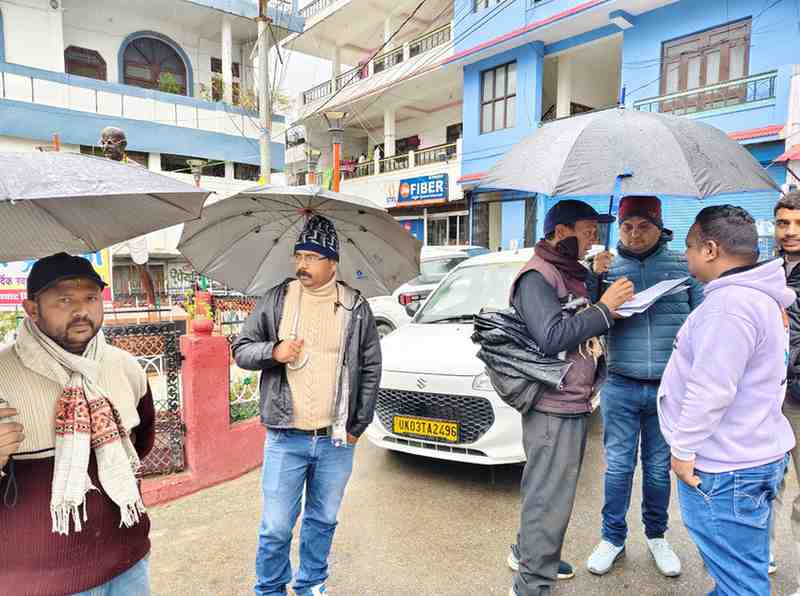 बारिश के बावजूद धरने में डटी रही लोहाघाट विकास संघर्ष समिति।
