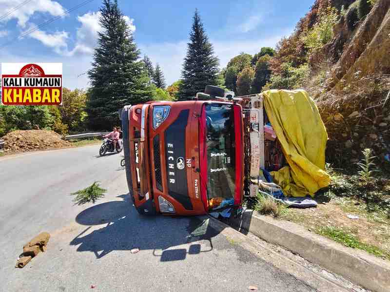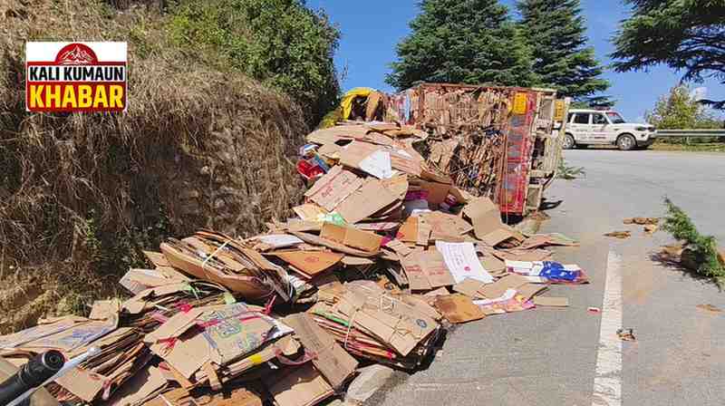 रिपोर्ट:लक्ष्मण बिष्ट : लोहाघाट:कार को बचाने के प्रयास में सड़क में पलटा कबाड़ से भरा कैंटर तीन लोग मामूली रूप से चोटिल