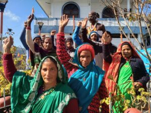 अपनी मांगों को लेकर लोहाघाट के गांधी पार्क में धरने में बैठी महिला गुरिल्ला सरकार से मांगे पूरी करने की करी अपील