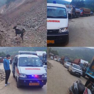 : लोहाघाट:संतोला में फिर बंद हुआ एनएच एंबुलेंस सहित कई वाहन फंसे