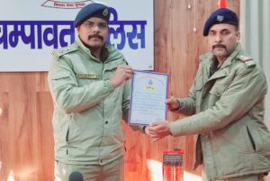 : चंपावत:नशे के खिलाफ प्रभावी कदम उठाने के लिए रीठा साहिब थानाध्यक्ष कमलेश भट्ट को एसपी ने किया सम्मानित