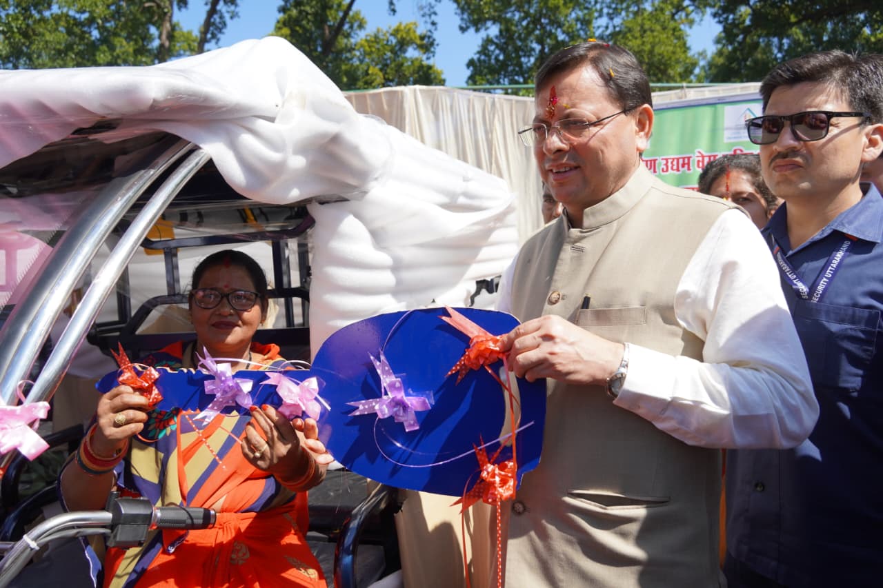 मुख्यमंत्री धामी ने इस दौरान रीप परियोजना के अंतर्गत प्रेरणा स्वयं सहायता समूह (SHG) की महिलाओं को 5 ई-रिक्शा की सौगात दी। मुख्यमंत्री ने स्वयं महिला समूह की प्रतिनिधियों को ई-रिक्शा की ‘खुशियों की चाबियाँ’ सौंपते हुए कहा कि यह पहल महिलाओं की आर्थिक स्वावलंबन और सामाजिक सशक्तिकरण की दिशा में एक नई शुरुआत है।मुख्यमंत्री धामी ने कहा कि “यह ई-रिक्शा केवल एक वाहन नहीं, बल्कि महिलाओं की आत्मनिर्भरता और गरिमा की नई पहचान है। इसके माध्यम से महिलाएं न केवल बेहतर आय अर्जित करेंगी, बल्कि सार्वजनिक परिवहन जैसे पारंपरिक रूप से पुरुष-प्रधान क्षेत्र में अपनी मजबूत उपस्थिति दर्ज कराएंगी।”उन्होंने कहा कि राज्य सरकार का लक्ष्य महिलाओं को ‘सहायता प्राप्तकर्ता’ नहीं, बल्कि ‘सशक्त उद्यमी’ के रूप में स्थापित करना है। उन्होंने बताया कि स्वयं सहायता समूहों को सामूहिक रूप से इस प्रकार के उद्यम स्थापित करने के लिए हर संभव वित्तीय, तकनीकी और प्रशिक्षण सहयोग उपलब्ध कराया जाएगा, ताकि महिलाएं आत्मनिर्भरता के साथ-साथ अन्य महिलाओं को भी प्रेरित कर सकें।मुख्यमंत्री ने यह भी कहा कि इस प्रकार के प्रयास न केवल ग्रामीण अर्थव्यवस्था को सशक्त बनाएंगे, बल्कि “नारी शक्ति को नये अवसरों और सम्मान से जोड़ने का माध्यम बनेंगे।”कार्यक्रम में दर्जा राज्य मंत्री श्याम नारायण पांडे, जिला अध्यक्ष गोविंद सामंत, प्रदेश महामंत्री मुकेश कलखुड़िया, जिला पंचायत अध्यक्ष आनंद अधिकारी, ब्लॉक प्रमुख अंचला बोहरा, जिला पंचायत सदस्य सरस्वती चंद, नगर पालिका अध्यक्ष चंपावत प्रेमा पांडे, टनकपुर नगर पालिका अध्यक्ष विपिन कुमार, बनबसा नगर पंचायत अध्यक्ष रेखा देवी, जिलाधिकारी श्री मनीष कुमार, पुलिस अधीक्षक अजय गणपति, मुख्य विकास अधिकारी डॉ० जी एस खाती सहित विभिन्न जनप्रतिनिधि, विभागीय अधिकारी, गणमान्य नागरिक व हजारों की संख्या में लोग मौजूद रहे।
