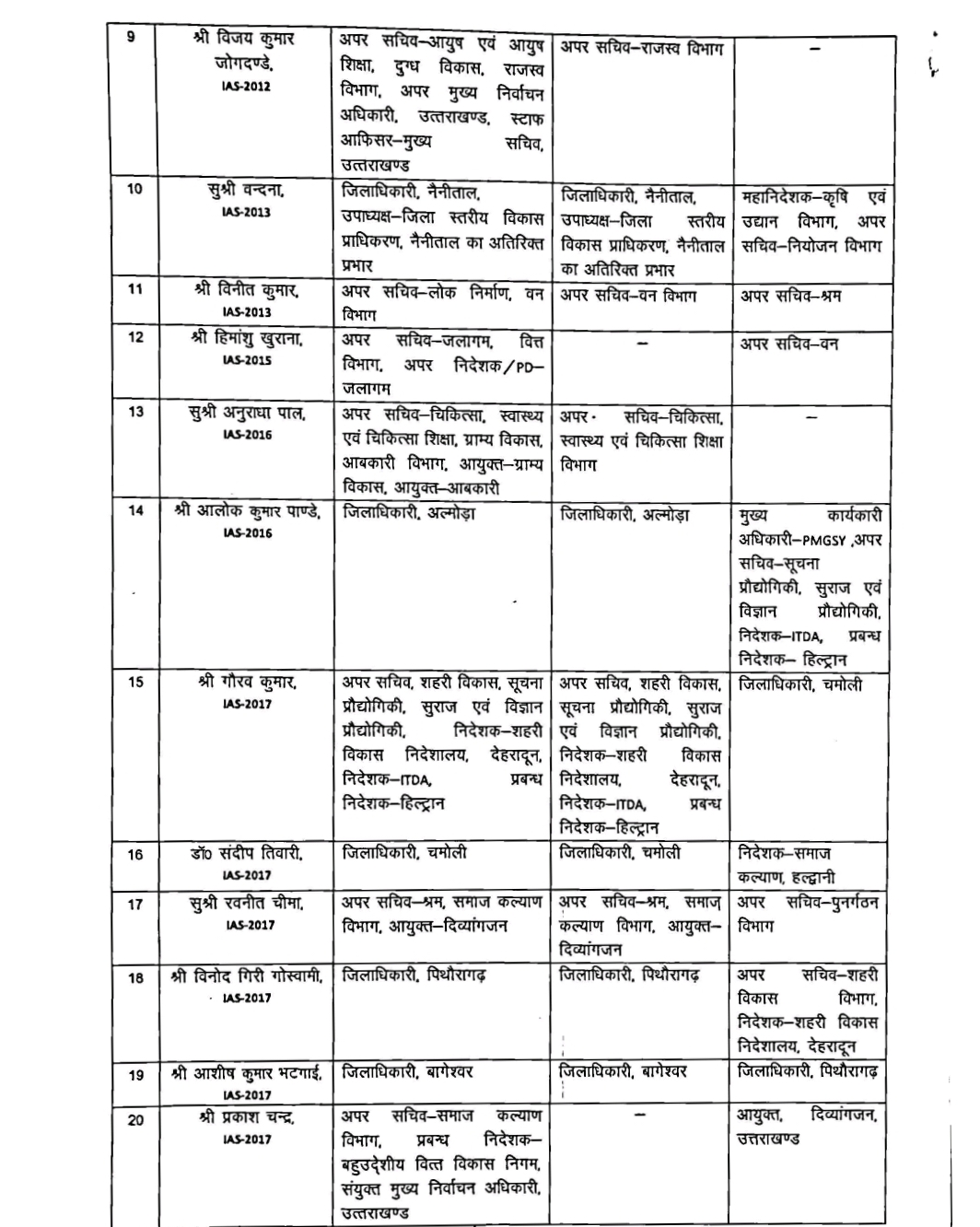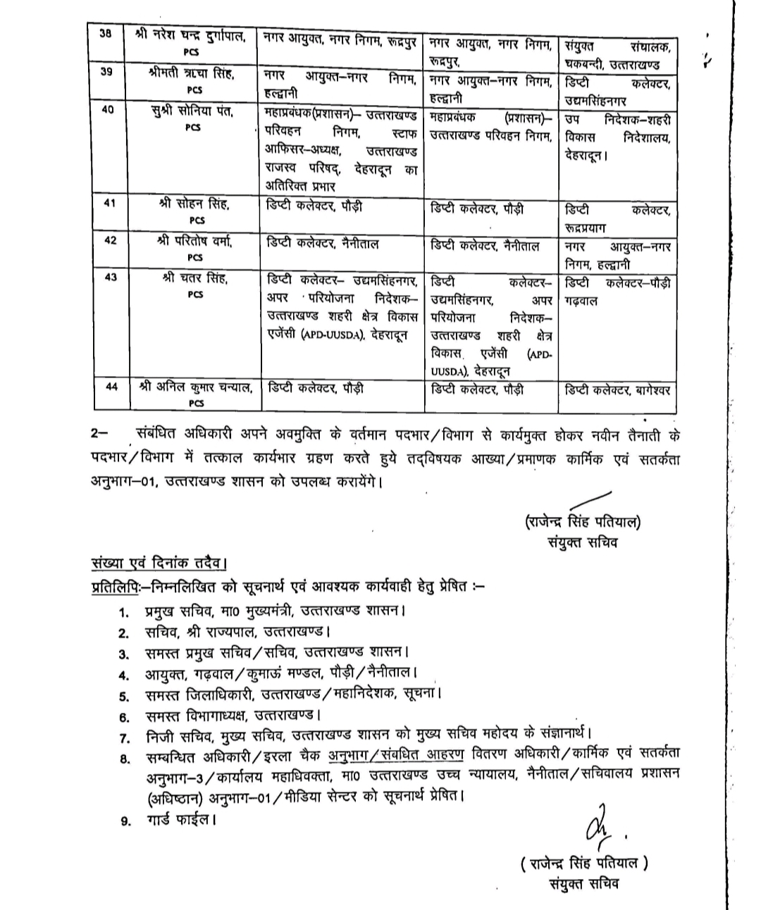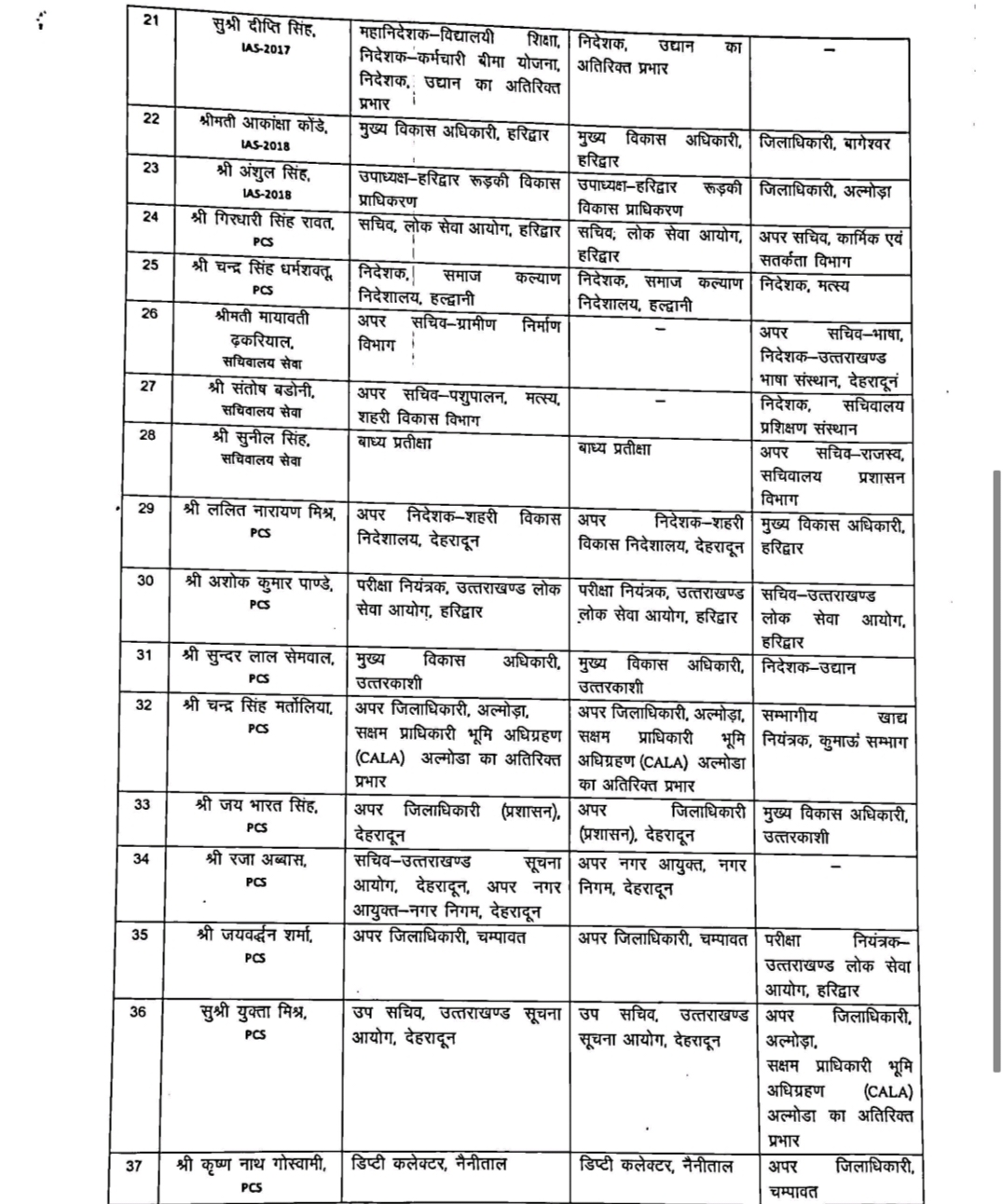 रिपोर्ट:लक्ष्मण बिष्ट : शासन ने कई आईएएस व पीसीएस अधिकारियो को किया इधर-उधर के0एन 0गोस्वामी होंगे एडीएम चंपावत।