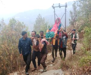 सील गांव की गर्भवती की फिर डोली बनी सहारा ग्रामीणों ने 8 किलोमीटर पैदल चल सड़क तक पहुंचाया जंगल मे 108 में हुई डिलीवरी सीएम की घोषणा के बावजूद नहीं बन सकी सड़क /क्या यही आदर्श जिला चंपावत है?