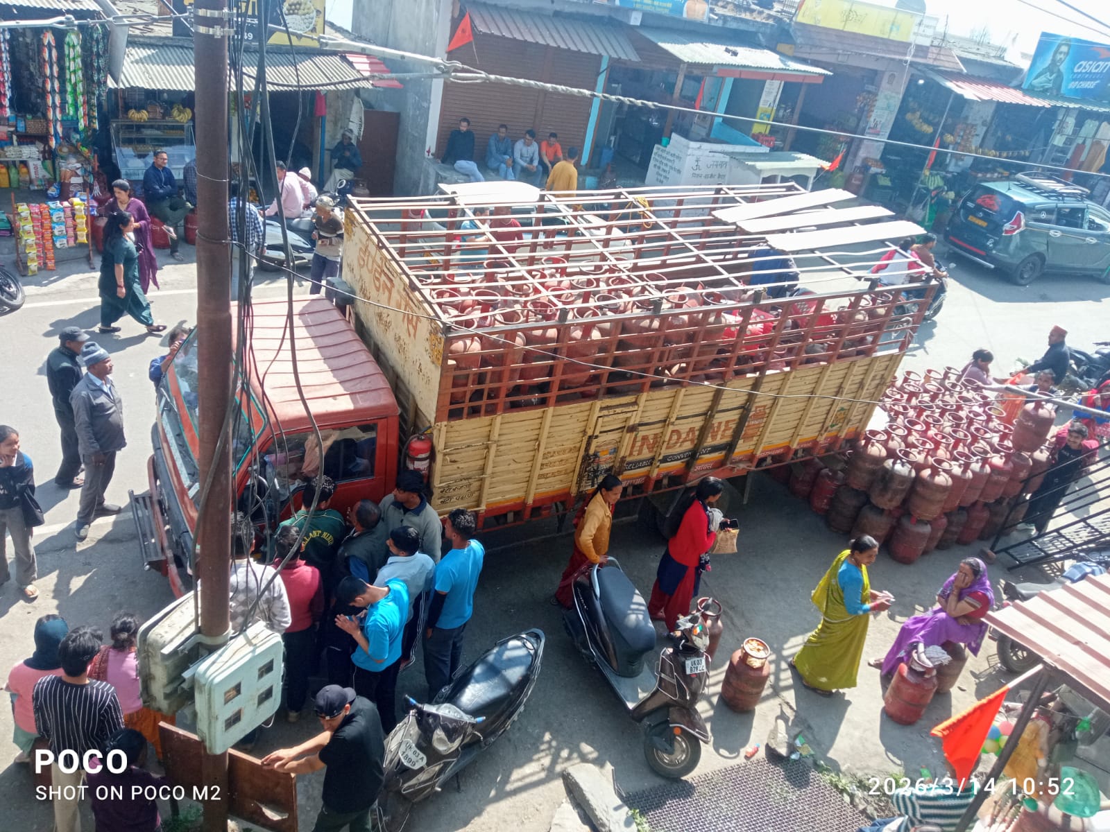 बाराकोट मे गैस का वाहन पहुंचने से जनता को मिली बड़ी राहत। बड़ी संख्या में गैस भराने पहुंचे लोग