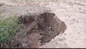 बरसाती नाले से भूकटाव के चलते ग्रामीणों की उपजाऊ जमीन और घरों को हुआ भारी खतरा मानसून में आपदा का बड़ा खतरा