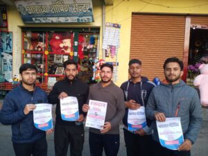 युवाओं ने कहा अगर कोई व्यक्ति या युवा रक्तदान करने का इच्छुक है वह इस नेक कार्य में प्रतिभाग कर सकते हैं युवाओं ने बताया उनके द्वारा समय पर स्वच्छता, पौधरोपण ,महिला सशक्तिकरण अभियान चलाए जाते हैं युवाओं के द्वारा रक्तदान कार्यक्रम का जोर-शोर से प्रचार प्रसार किया जा रहा है युवाओं ने कहा रक्तदान सबसे बड़ा दान है जिससे किसी का जीवन बचाया जा सकता है वहीं लोगों के द्वारा युवाओं के इस नेक कार्य की सराहना की जा रही है इस दौरान सागरनाथ, सुमित कुमार ,अमन कोहली ,अंकित कुमार ,बबीता गढ़कोटी तनुजा सहित कई युवा मौजूद रहे