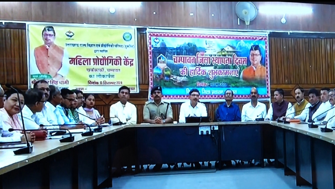 जनपद चंपावत स्थापना दिवस 15 सितंबर के अवसर पर जिला मुख्यालय के जिला कलेक्ट्रेट सभागार में सादगीपूर्ण ढंग से एक कार्यक्रम आयोजित किया गया। जिसमें प्रदेश के मुख्यमंत्री पुष्कर सिंह धामी जी द्वारा वर्चुअली प्रतिभाग किया गया।_इस अवसर पर मुख्यमंत्री द्वारा आदर्श चंपावत भू- स्थानिक डैशबोर्ड को लांच किया तथा यूकॉस्ट द्वारा संचालित महिला प्रौद्योगिकी केंद्र का लोकार्पण किया।_वर्चुअल माध्यम से जुड़े सीएम धामी ने जनपद चंपावत के स्थापना दिवस के अवसर पर समस्त जनपद वासियों को बधाई एवं शुभकामनाएं दी।इस अवसर पर उन्होंने पूर्व विधायक स्वर्गीय कैलाश गहतोड़ी को भी स्मरण किया। उन्होंने कहा जनपद चंपावत का ऐतिहासिक महत्व होने के साथ साथ यह स्थान प्राकृतिक रूप से बेहद खूबसूरत और नैसर्गिक है। जनपद चंपावत एक धार्मिक स्थान है। यहां न्याय के देवता गोलज्यू की जन्म भूमि के साथ ही जिले में एक ओर मां वाराही तथा एक ओर मां पूर्णागिरि विराजमान है। केदारखंड में इस स्थान को कुर्मांचल कहा गया है।इन्हीं के आशीर्वाद से मुझे प्रदेश का प्रतिनिधित्व करने का मौका मिला है। मैंने संकल्प लिया है कि जनपद चंपावत आदर्श जिला बनाए जाने के साथ ही चम्पावत को देश का एक अग्रणी जिला बनाया जाएगा।