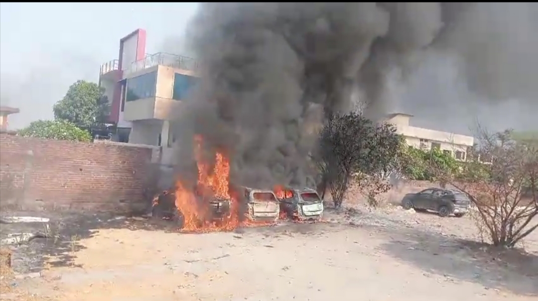 : हल्द्वानी में KI A कार के गोदाम में लगी आग तीन कार जलकर हुई खाक