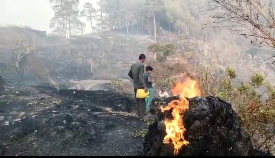 : बाराकोट:पम्दा में जंगल की आग का तांडव ग्रामीणों के कई घास के लुटे हुए खाक आग बुझाने में कई ग्रामीण झुलसे