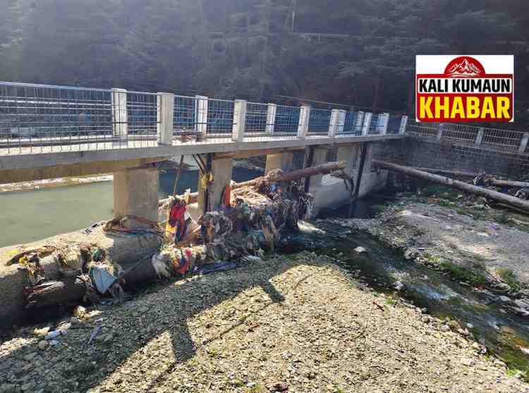 लोहाघाट:महादेव मंदिर के सामने सिंचाई विभाग के पुल में फंसे पेड़ व गंदगी के ढेर लोगों ने जताई नाराजगी