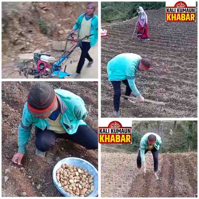 लोहाघाट: एक हाथ से आलू बुवाई में जुटे बलाई गांव के दिव्यांग पूरन सिंह बने मिसाल।
