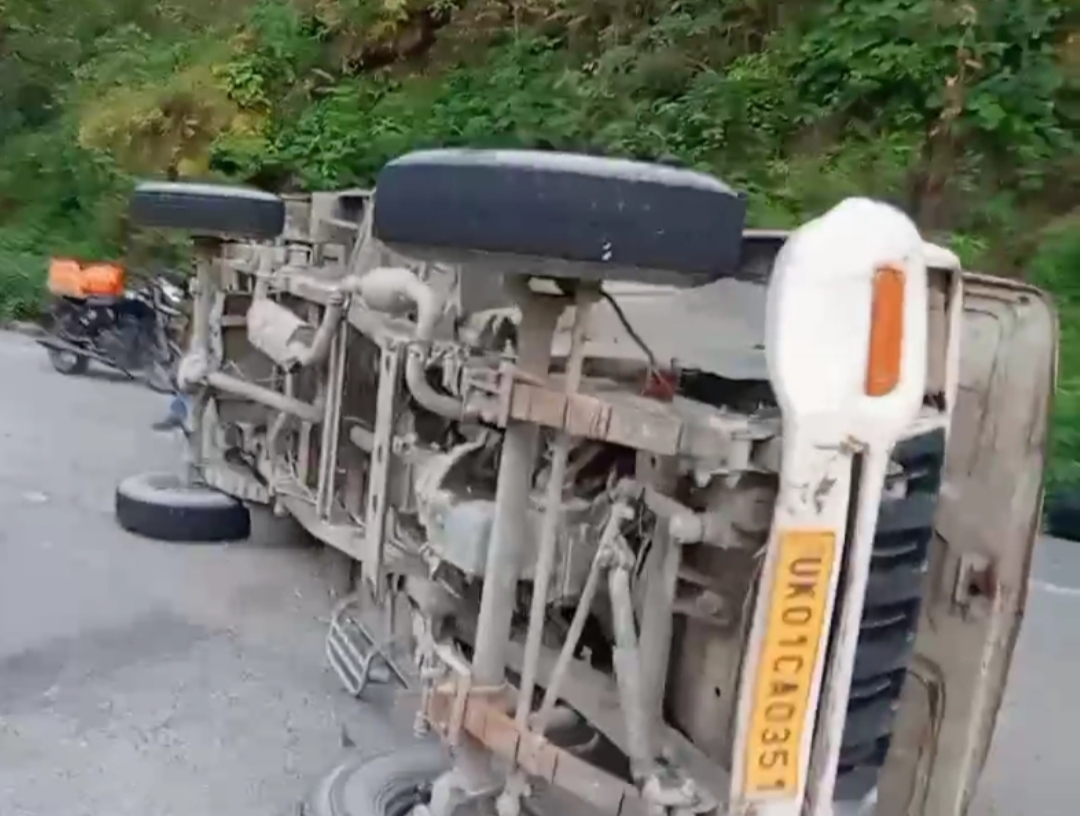 : टनकपुर चंपावत एनएच में सुखीढांग के पास पलटी पिकअप एक गंभीर
