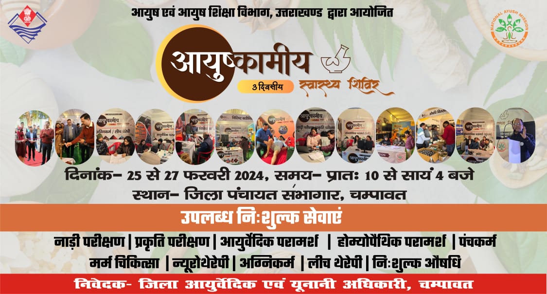 : चंपावत:25 से 27 फरवरी तक चंपावत में लगेगा निशुल्क विशाल आयुष चिकित्सा शिविर