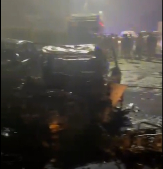 विस्फोट में कई लोग घायल।10 गाड़ियों में लगी आग ।