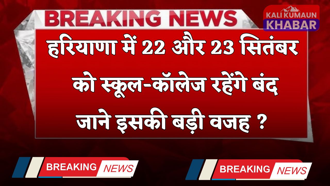 रिपोर्ट: साहबराम : Haryana: हरियाणा में 22 और 23 सितंबर को स्कूल-कॉलेज रहेंगे बंद, जाने इसकी बड़ी वजह ?