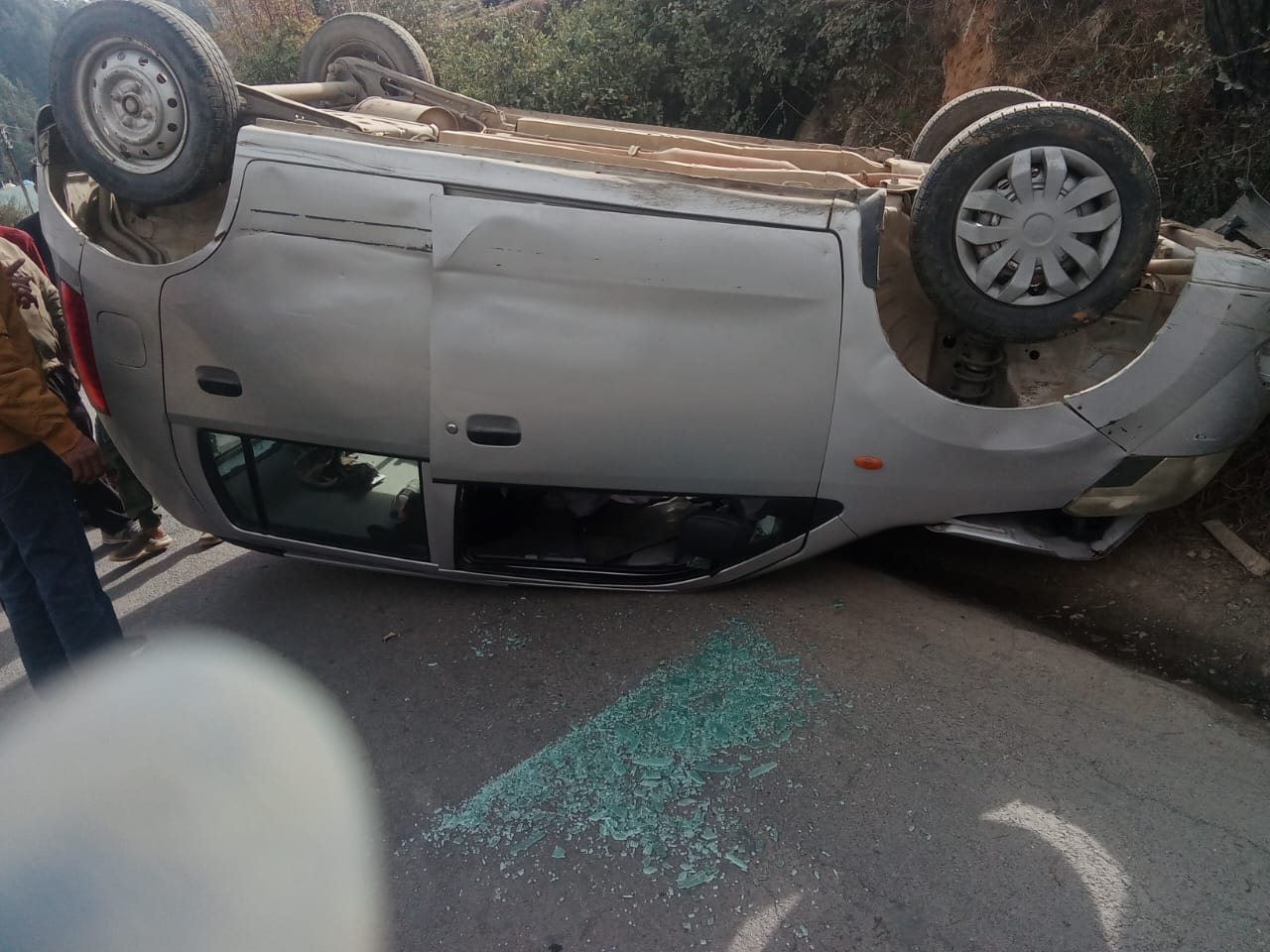: लोहाघाट:एनएच में पलटी वैगनआर पिता पुत्री घायल /आधा घंटा बंद रहा है एनएच मदद को आए लोग /शीशा तोड़ निकाले बाहर